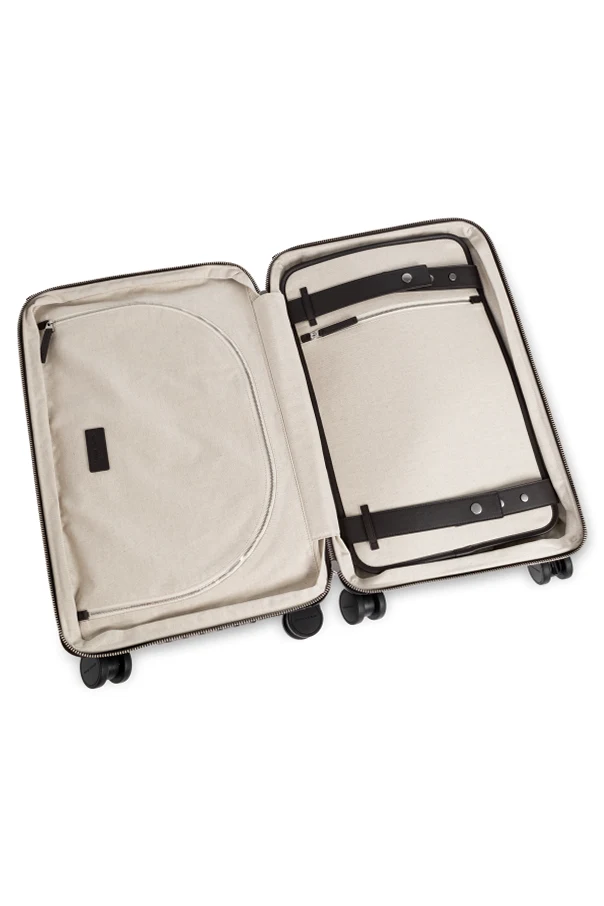 Wzmocnione rogi i krawędzie oraz najwyższej jakości metalowe wykończenia zapewniają trwałość i bezpieczeństwo podczas każdej podróży, zaś cztery zwrotne kółka wraz z teleskopową rączką gwarantują niebywałą wygodę użytkowania. Znak rozpoznawczy – logo „BOTTEGA” umieszczone na eleganckiej zawieszce – subtelnie podkreśla unikatowość produktu.