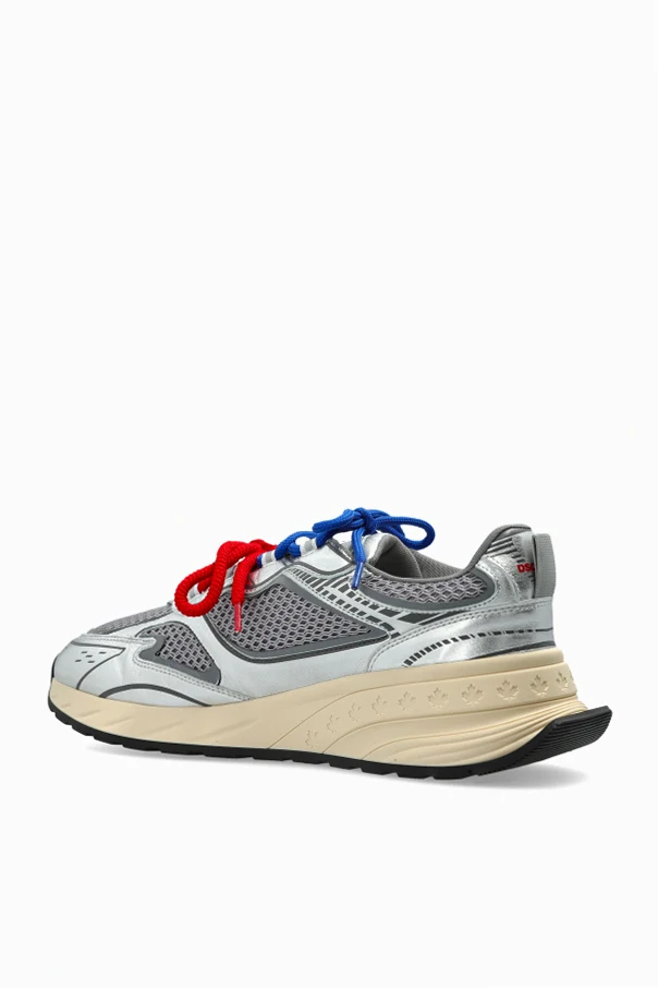 Buty sportowe „Sprinter” to zmysłowa propozycja marki Dsquared2, która w wyjątkowy sposób łączy nowoczesny design z nutą sportowej elegancji. Dominujący srebrny kolor, inspirowany metalicznym blaskiem, czyni ten model niezwykle wyrazistym i zwraca uwagę już na pierwszy rzut oka.