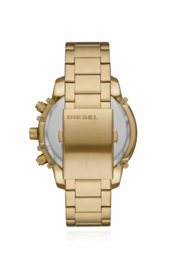 Stalowy zegarek Griffed marki Diesel to esencja nowoczesnej elegancji zamknięta w masywnej, okrągłej kopercie. Całość wykonana została z najwyższej jakości stali nierdzewnej, pokrytej szlachetną, złotą powłoką , co subtelnie podkreśla jego ekskluzywny charakter.