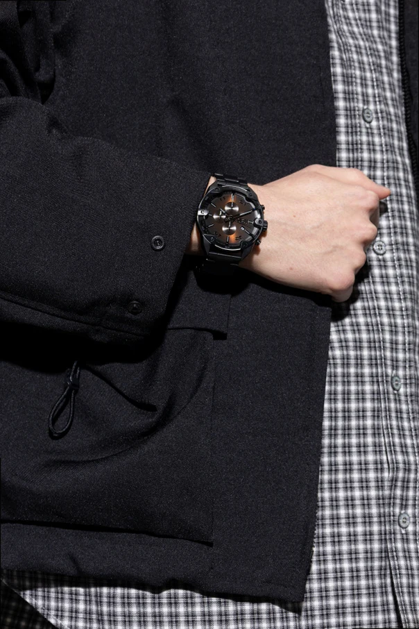 Stalowy zegarek Spiked marki Diesel stanowi kwintesencję wyrafinowanej męskości, zachwycając surową estetyką oraz dopracowanymi detalami. Okrągła koperta o imponujących, solidnych proporcjach, podkreślona śmiałymi śrubami na lunecie, wraz z satynowanym, czarnym wykończeniem stali nierdzewnej, emanuje industrialnym charakterem.