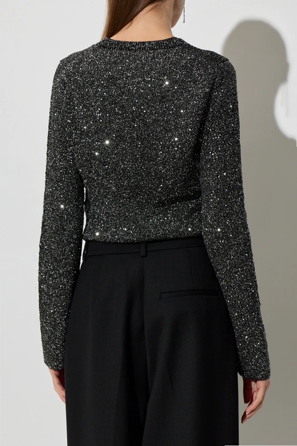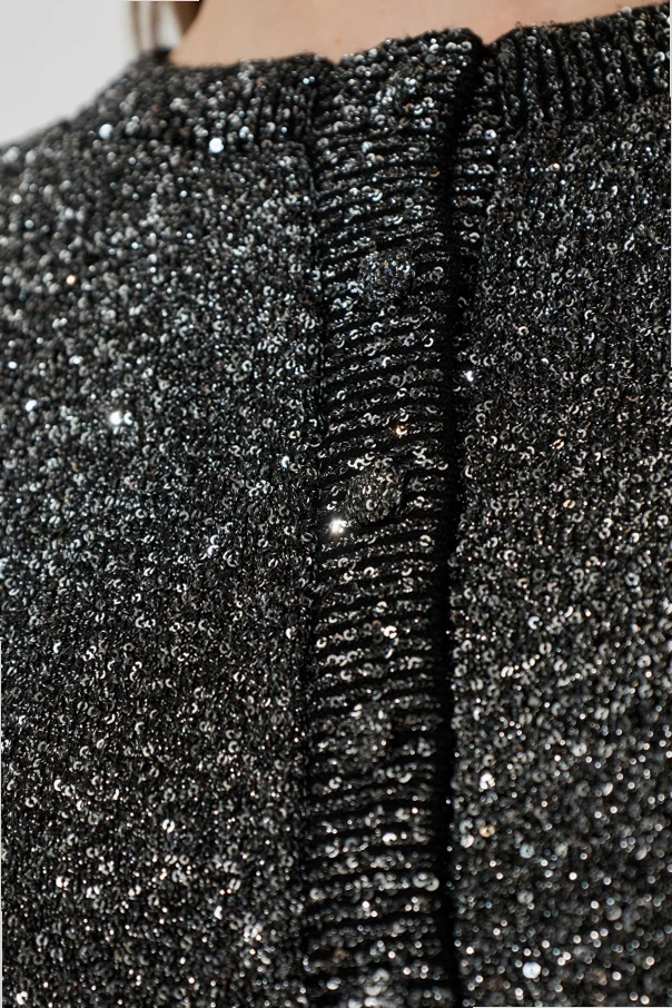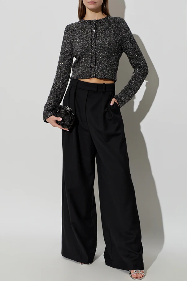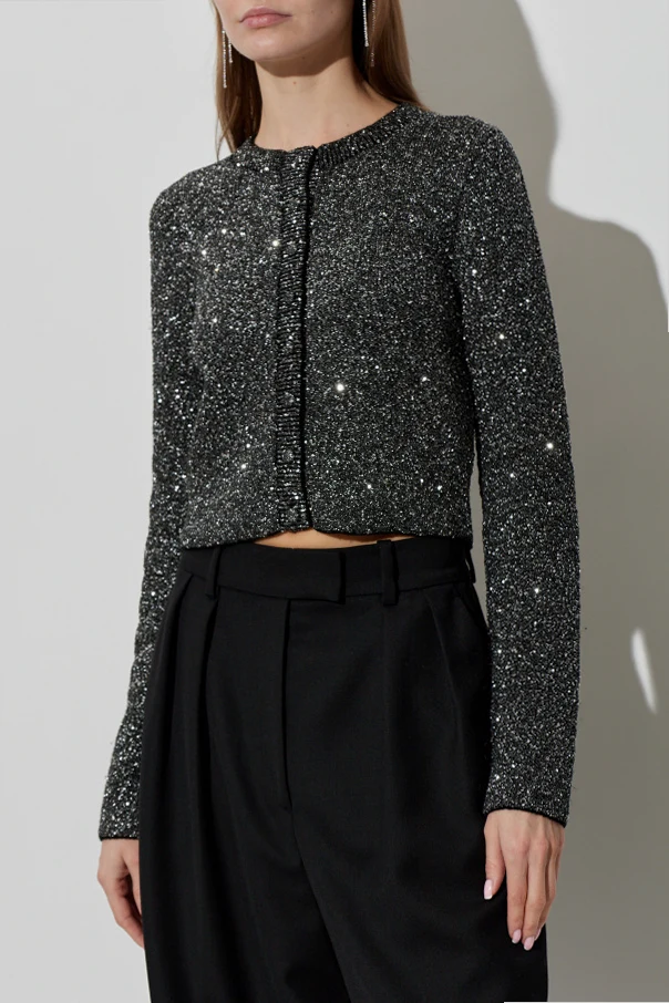 Kardigan „Ferra” z ekskluzywnej kolekcji projektu LoveShackFancy to esencja wyrafinowanego minimalizmu i zmysłowego blasku. Krótka, dopasowana forma o klasycznej linii podkreśla sylwetkę, a czarny kolor w połączeniu z lśniącymi drobinkami oraz metaliczną przędzą dodaje mu wyjątkowo wieczorowego uroku. Całość wykonana została z kunsztownie dzianego, stabilnego włókna o efektownej satynowej strukturze.
