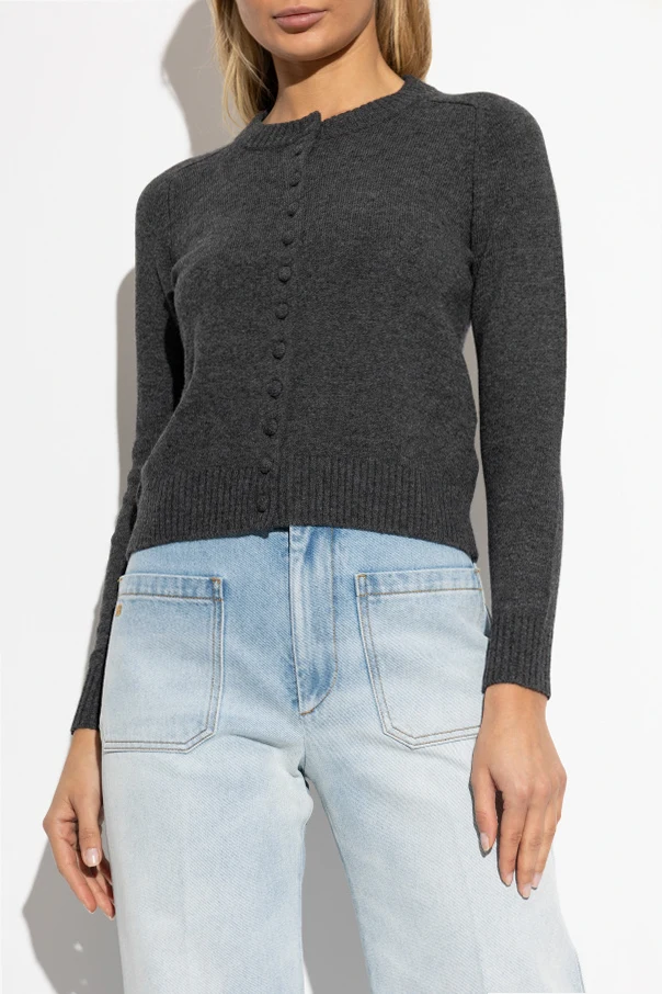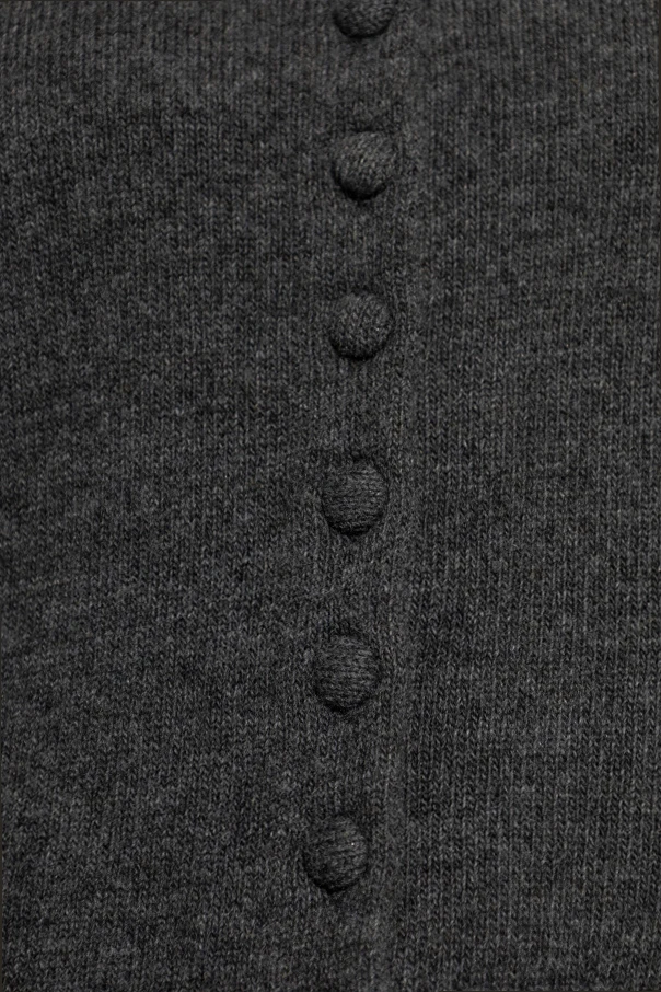 Całość wieńczą starannie oblekane materiałowe guziki oraz ściągacze przy mankietach i u dołu, zapewniające doskonałe dopasowanie do sylwetki. Pozbawiony widocznych logo i napisów, kardigan podkreśla minimalistyczną estetykę oraz ponadczasowe piękno tkaniny.
