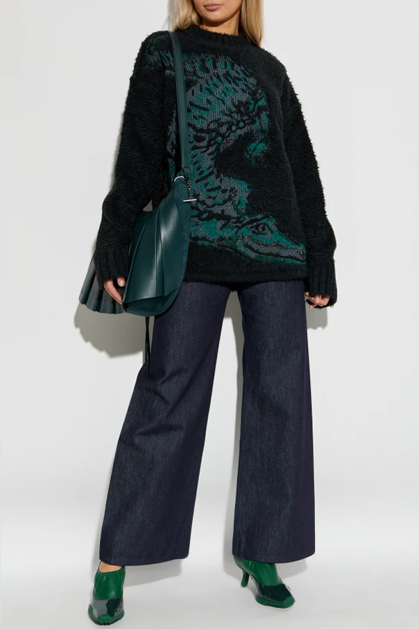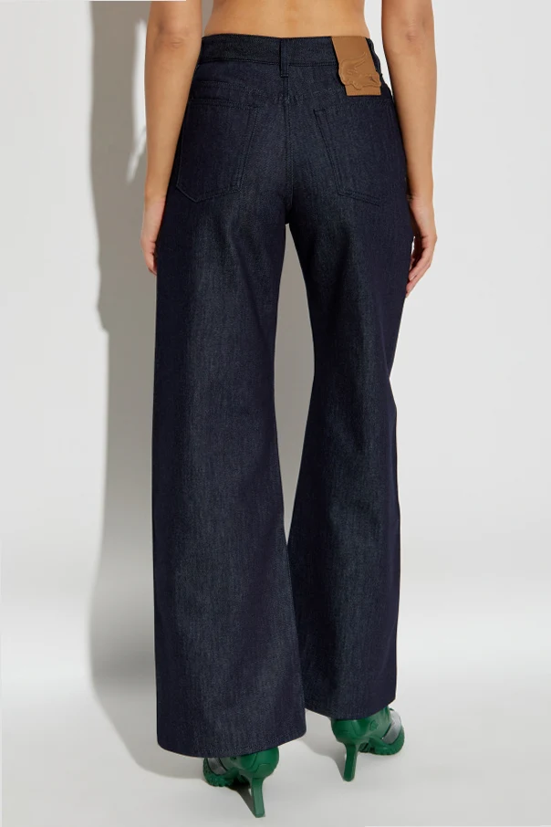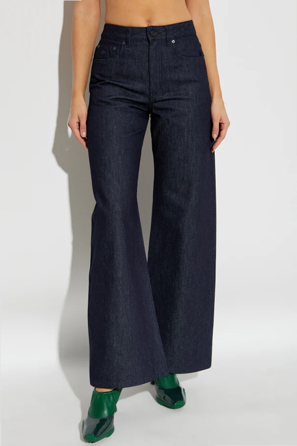 Oto jeansy z szerokimi nogawkami , emanujące wyrafinowaną prostotą, zaprojektowane przez LACOSTE RUNWAY . Ich wysoki stan subtelnie podkreśla talię, wydłużając linię sylwetki, podczas gdy szerokie nogawki harmonijnie układają się na całej długości, tworząc wyjątkowo majestatyczny efekt.