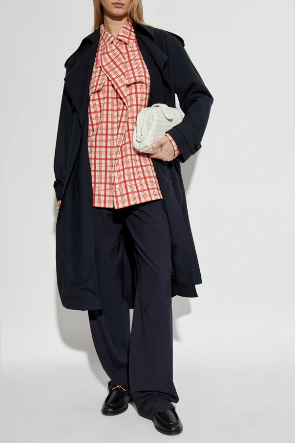 Prezentujemy wełniany trencz marki Bottega Veneta , który jest kwintesencją klasycznego szyku i elegancji. Utrzymany w głębokim granacie, charakteryzuje się dwurzędowym zapięciem na guziki. Dzięki klasycznemu krojowi i długości sięgającej poniżej kolan, stanowi doskonały wybór dla osób ceniących ponadczasowy styl.
