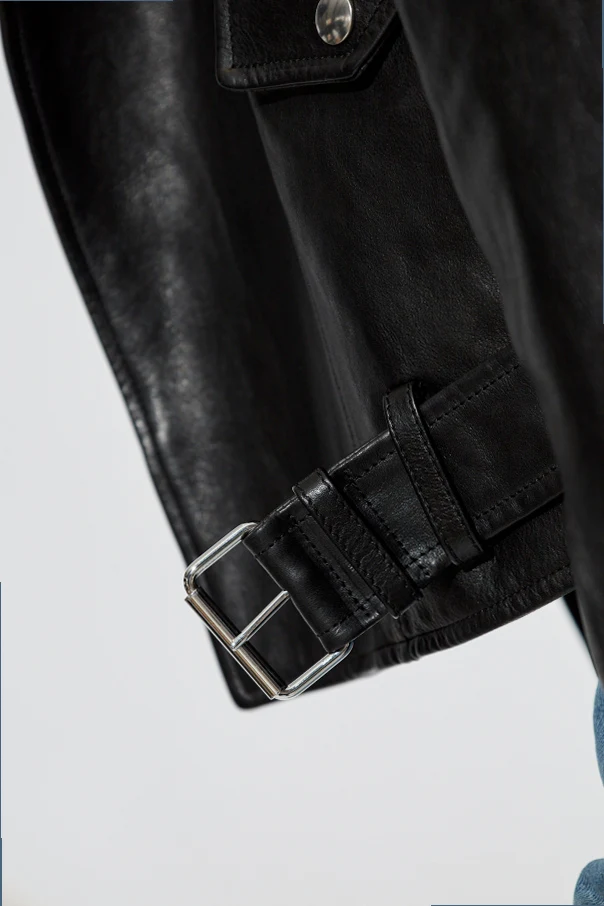 Przedstawiamy Skórzaną kurtkę z kapturem od renomowanego projektanta Alaïa , która łączy w sobie elegancję i nowoczesny styl. Wykonana z najwyższej jakości czarnej skóry cielęcej, emanuje luksusem i wyrafinowaniem.