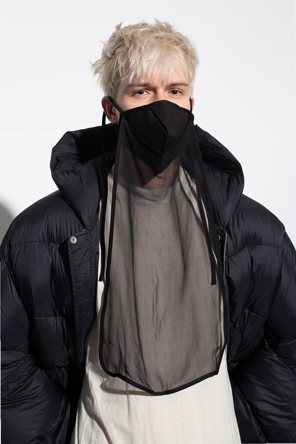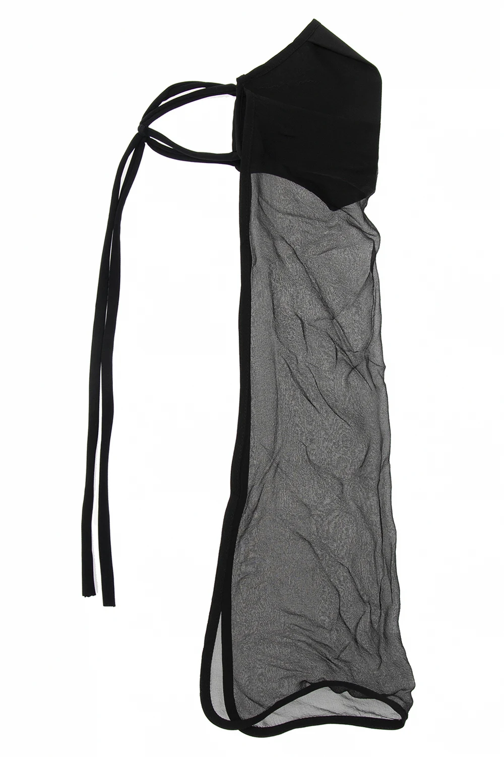 Czarna, bawełniana maska z wiązaniem Rick Owens. Wykończona jedwabiem.