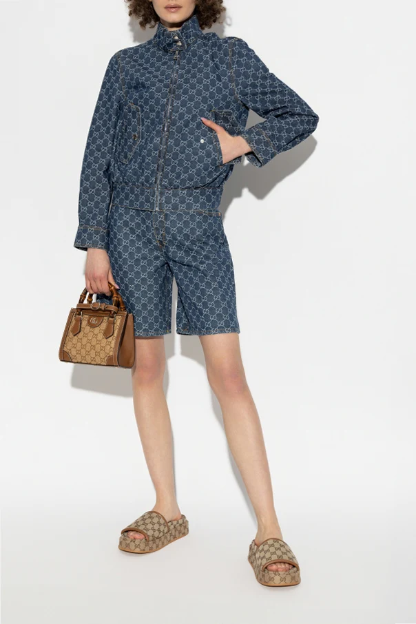 Jeansowa kurtka ze wzorem GG to esencja ekskluzywności i stylu od marki Gucci . Stworzona z najwyższej jakości denimu, prezentuje niepowtarzalny wzór, który pokrywa całą powierzchnię, nadając jej elegancji i modowego szyku.