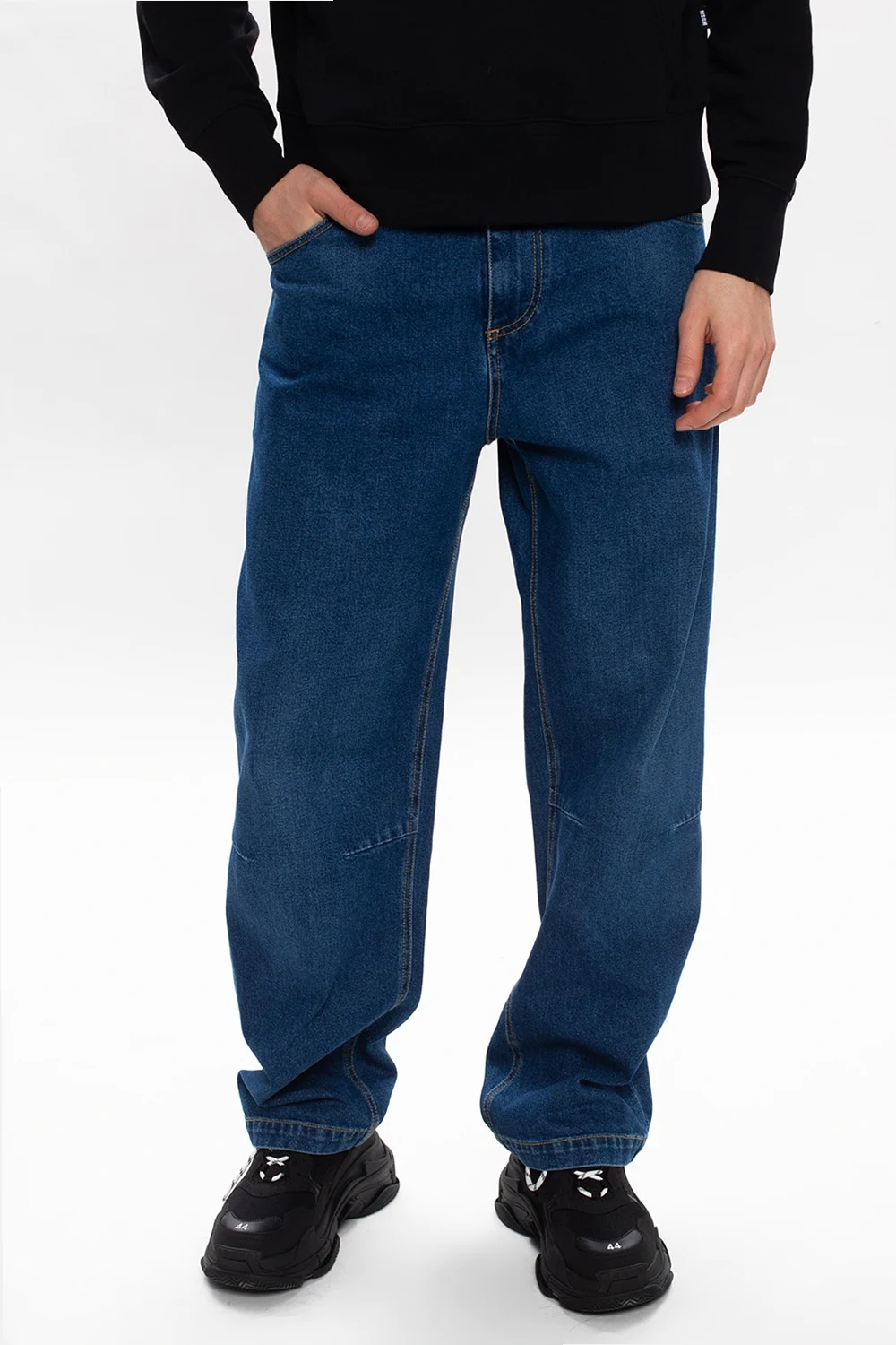 Blues – Niebieskie jeansy z baryłkowymi nogawkami. Skład: 100% bawełna
