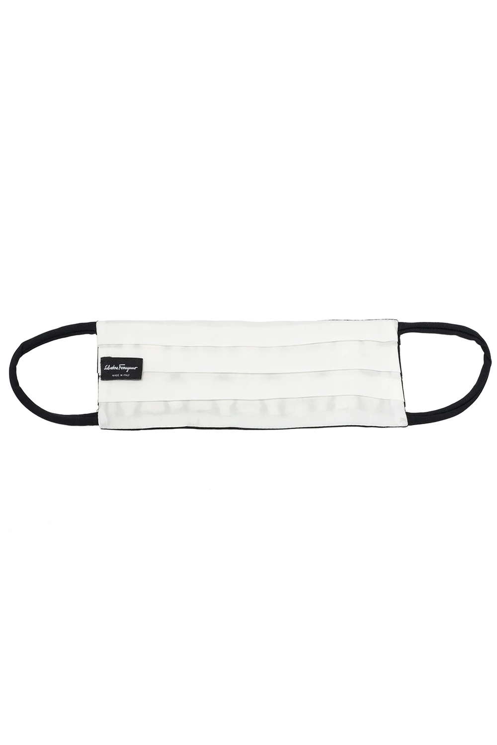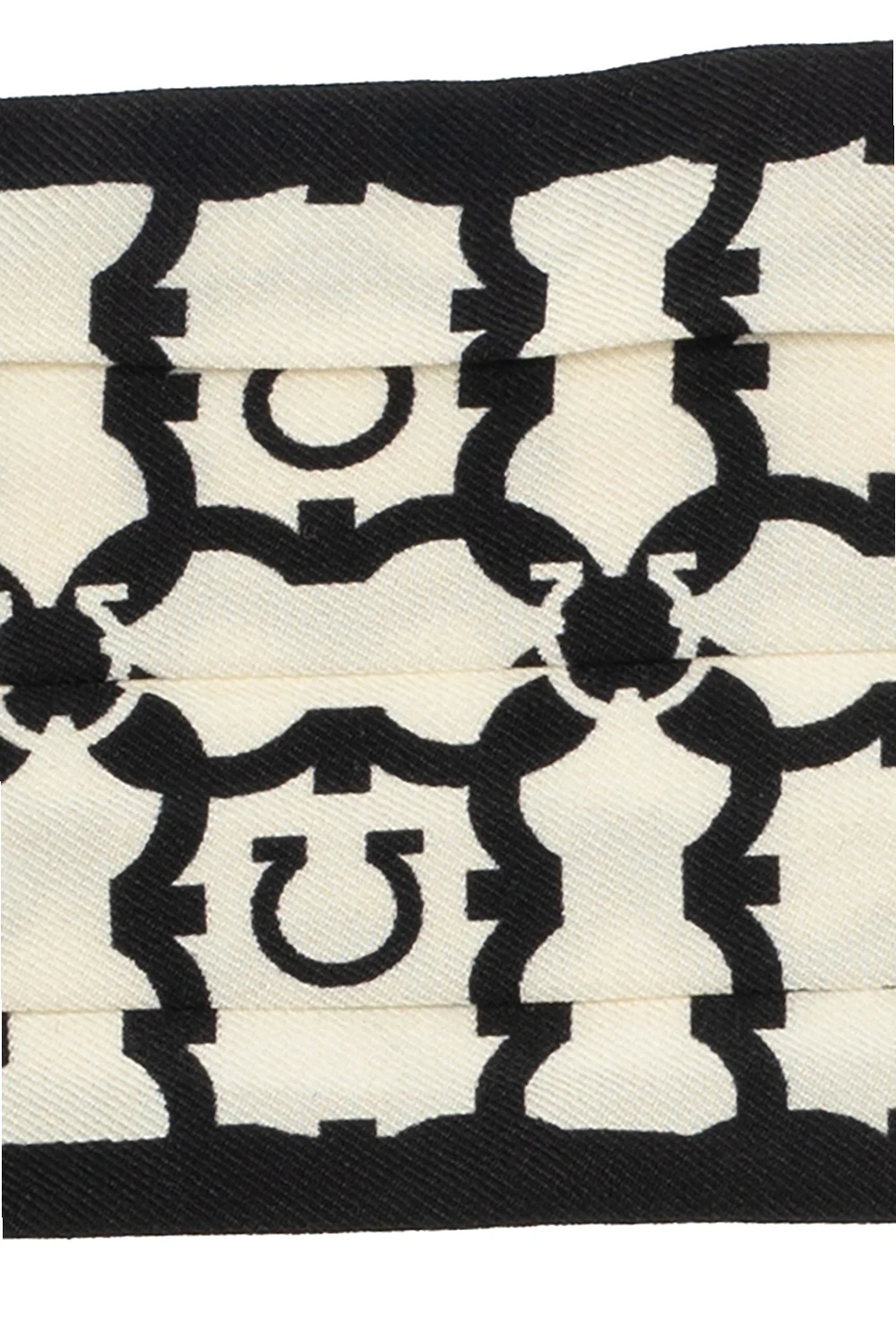 Kremowo-czarna maska Salvatore Ferragamo. Ozdobiona charakterystycznym dla marki wzorem z logo.
